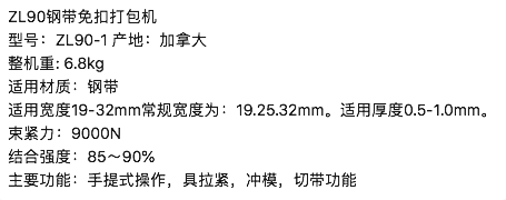 加拿大ZRTOOL钢带打包机ZL90
