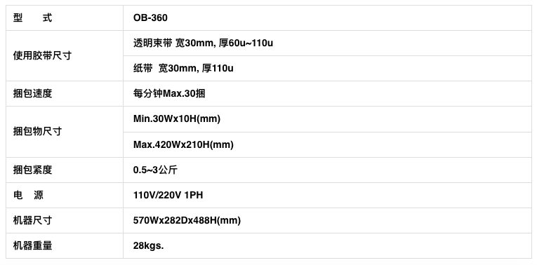 可以使用「纸带」或「透明胶带」捆包,采用热熔式粘接,产品捆包简便、美观。适合纸制品、药品、化妆品、电子产品及一般轻型物品使用。